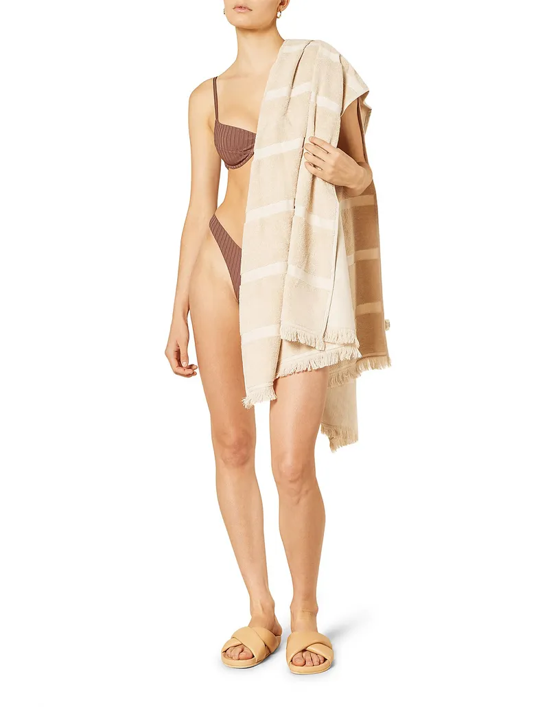 100x180 cm + Fringed beach and bath towel. 100% cotton, absorbent, soft towel.