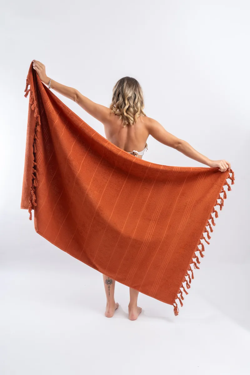 100x170 cm + Fringed Bath Beach Towel. 100% Cotton. Terry Fabric, Thin, Soft, Absorbent.