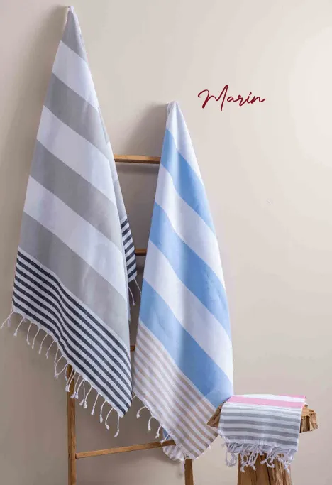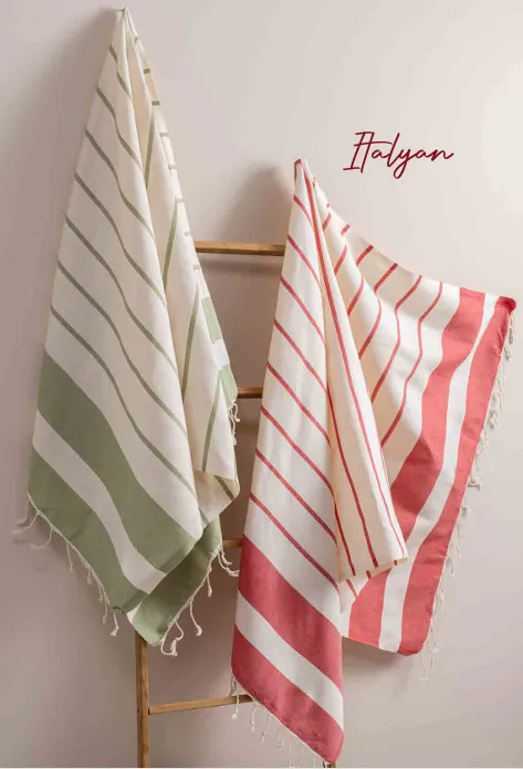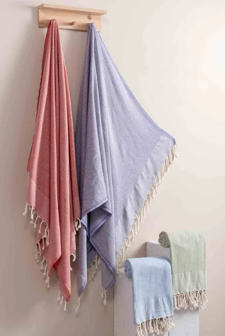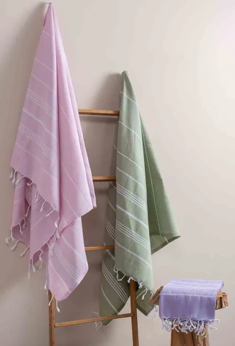 These stylish and elegant peshtemals are suitable for use both in the bathroom and on the beach, thanks to their lightweight structure and tassel details. They come in various color options to suit every taste.