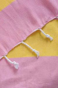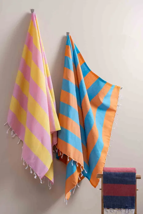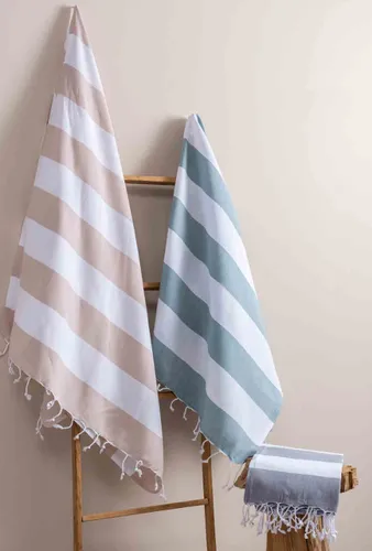 The fringed peshtemal with elegant wide border details, measuring 100x180 cm, offers comfort and style both at the beach and in the bathroom. Its 100% cotton texture ensures high water absorbency and quick drying, providing comfortable use throughout the day. Its soft structure does not irritate the skin, and its lightness offers easy portability in a bag or during travel. With its modern striped design and wide range of colors, this peshtemal appeals to every taste, complementing your style everywhere from daily use to your vacation suitcase.
