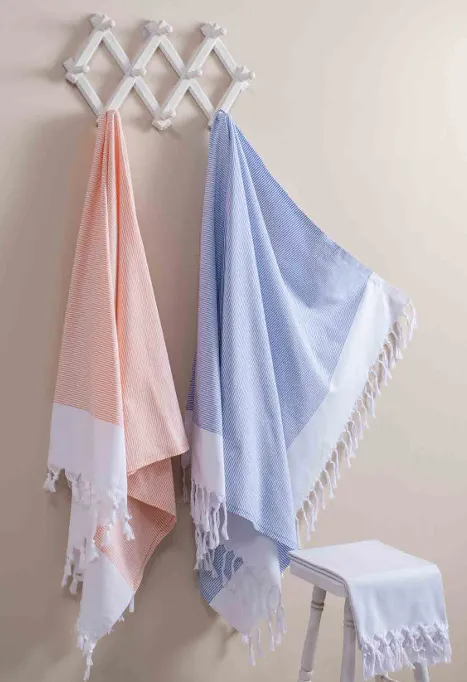 The Colorful Striped Tablecloth Towel Set adds an elegant touch to your bathroom with its retro fine striped design and pastel color tones. With its 100x180 cm size and fringed design, it can be used both as a decorative tablecloth towel and as a peshtemal. Its 100% cotton texture offers high water absorbency and a soft feel. Thanks to its lightweight structure, it can be used practically at the beach, in sports, in the bathroom, and in daily life. With its showy yet simple lines, it harmonizes with both modern and classic decoration styles and adds a warm, aesthetic atmosphere to its surroundings.