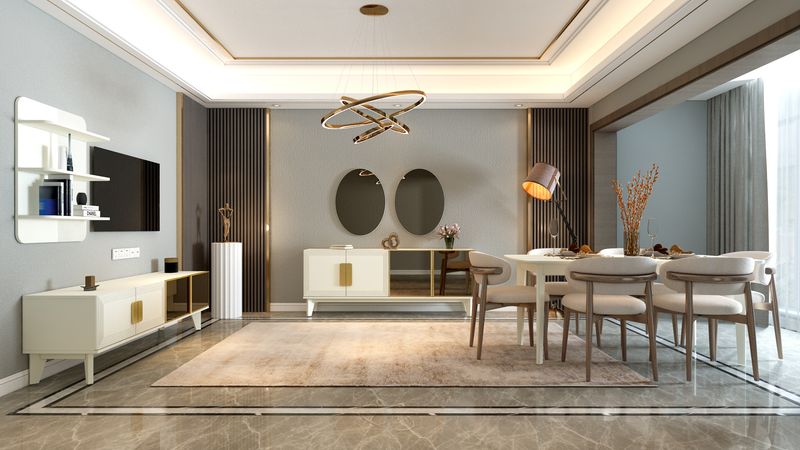 A dining room set that stands out with modern design and elegant details. It creates a sophisticated atmosphere in your space.