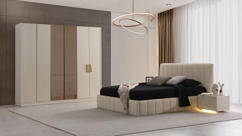 A chic and sophisticated bedroom set stands out with its modern design. Its functional design and aesthetic elements are in harmony.