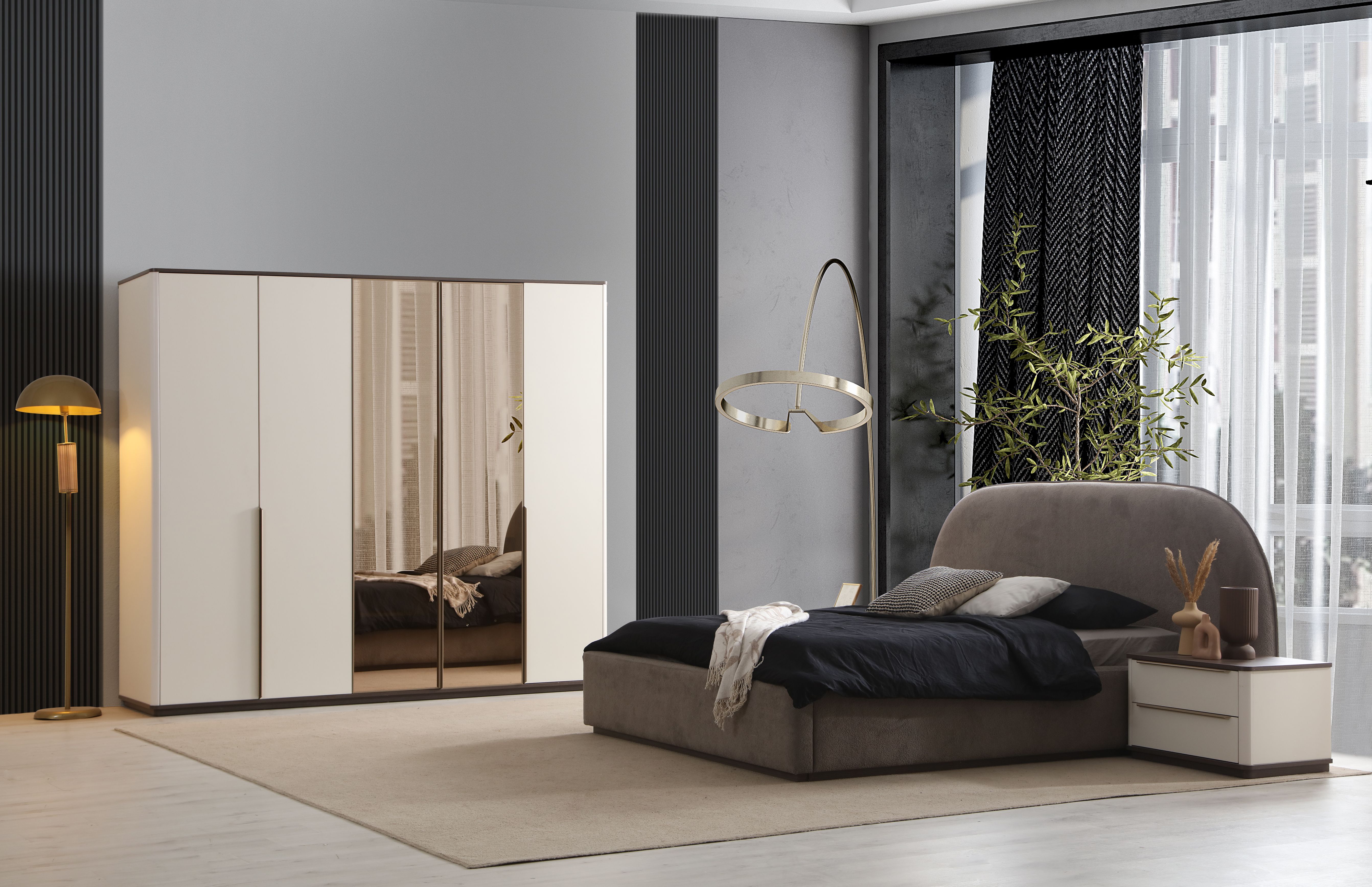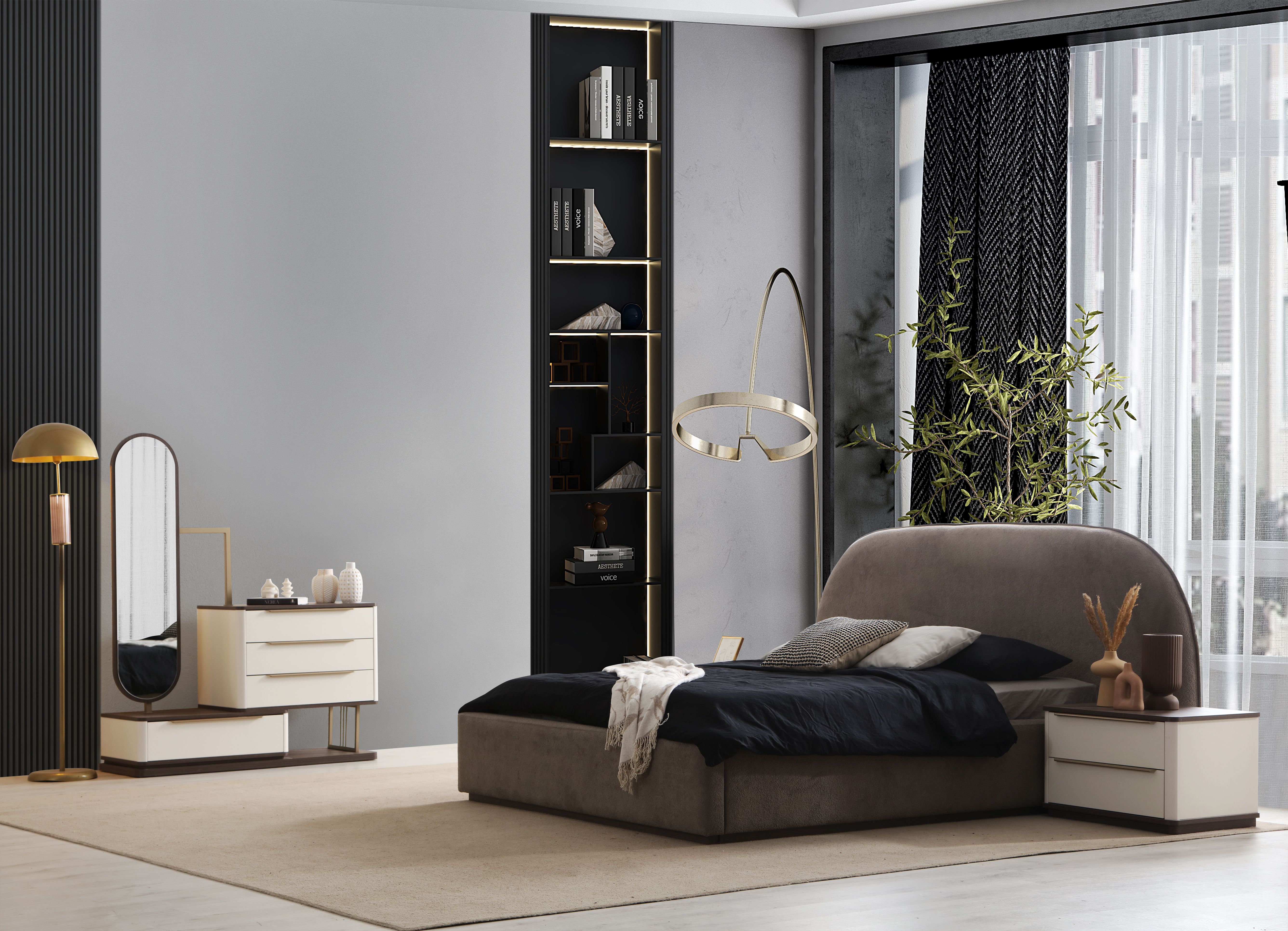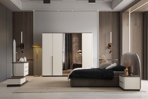 A chic and sophisticated bedroom set stands out with its modern design. Its functional design and aesthetic elements are in harmony.