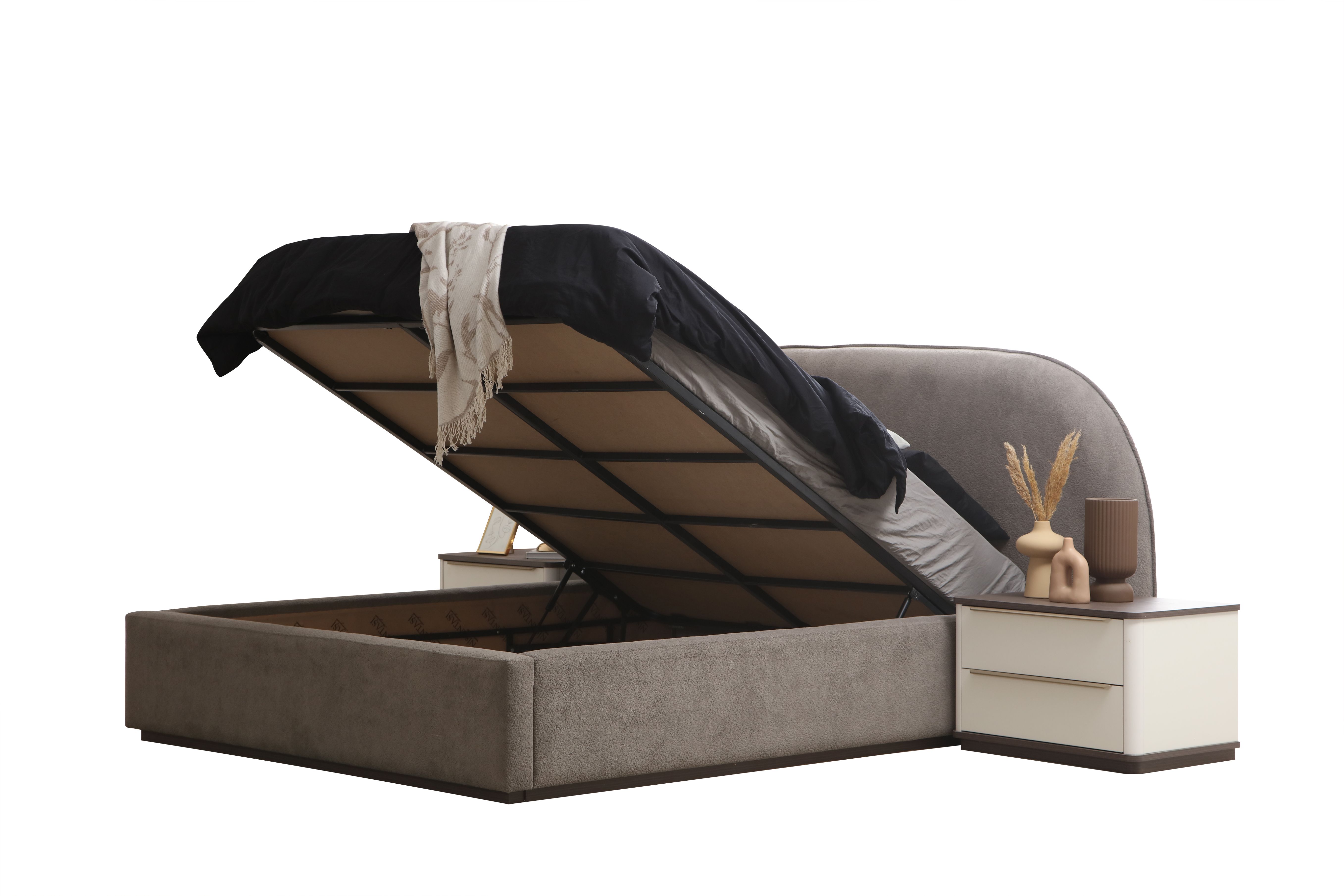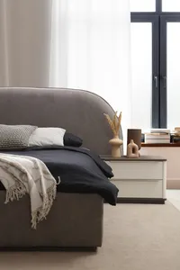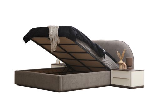 This stylish bed with storage combines comfort and functionality. With the spacious storage area under the bed, it offers an aesthetic solution to your home organization.