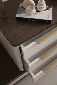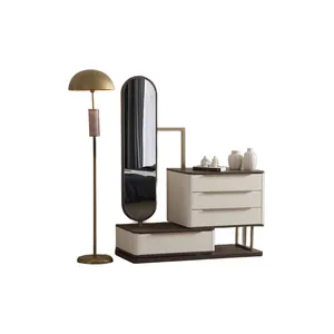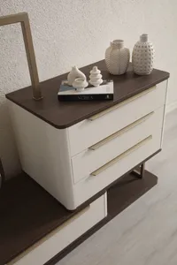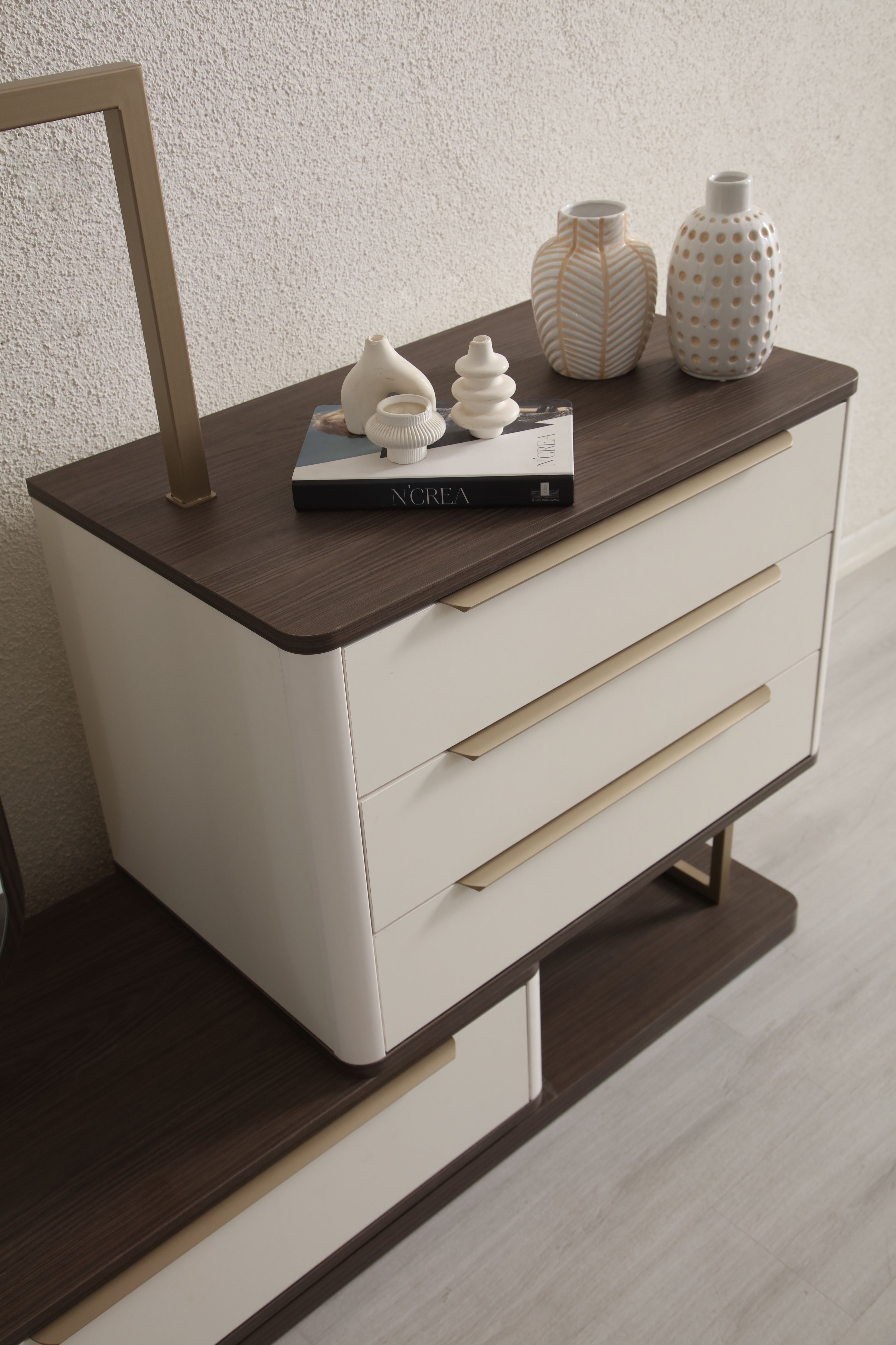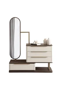 This modern dresser and mirror set combines elegant design with functionality. It is an ideal choice to meet both your storage and aesthetic needs.
