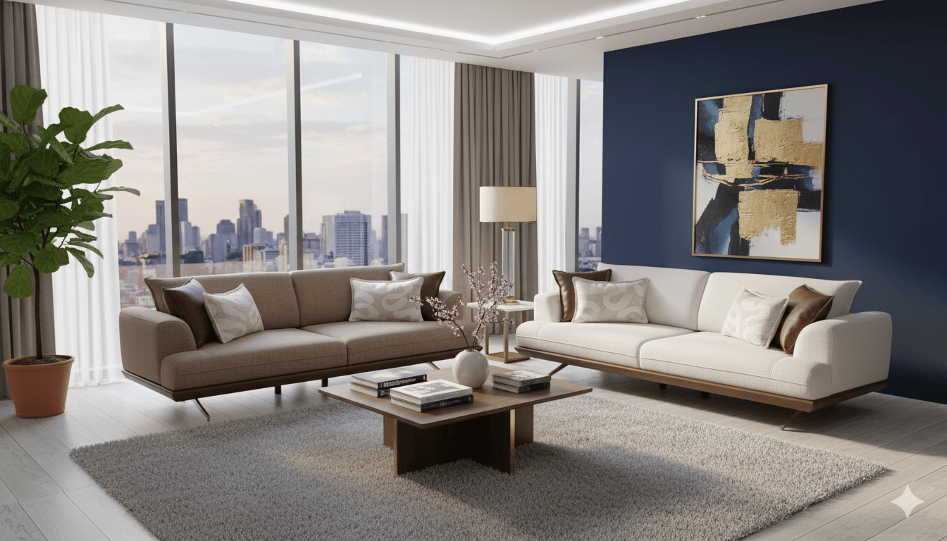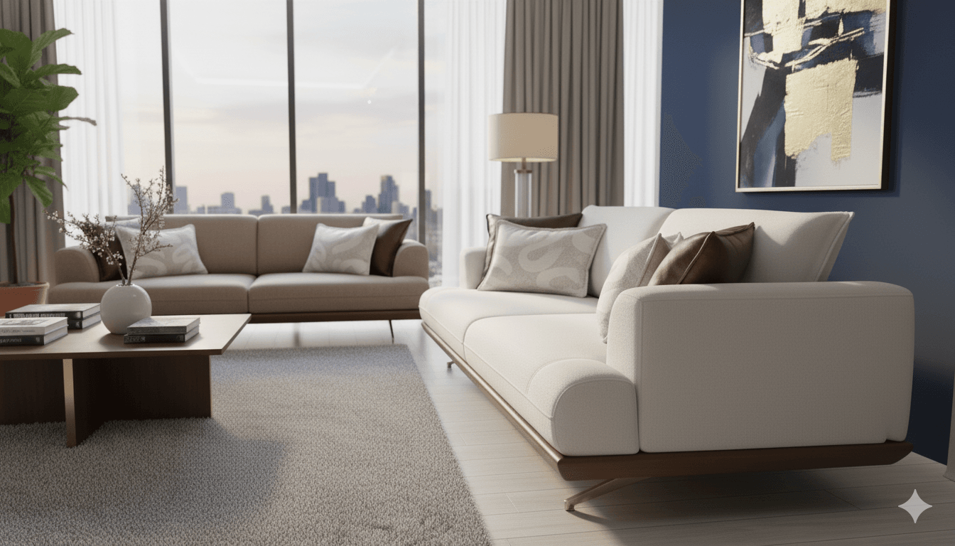 This double sofa set, featuring a stylish and modern design, combines elegant details with comfort. A professional touch that will enhance all your seating areas.