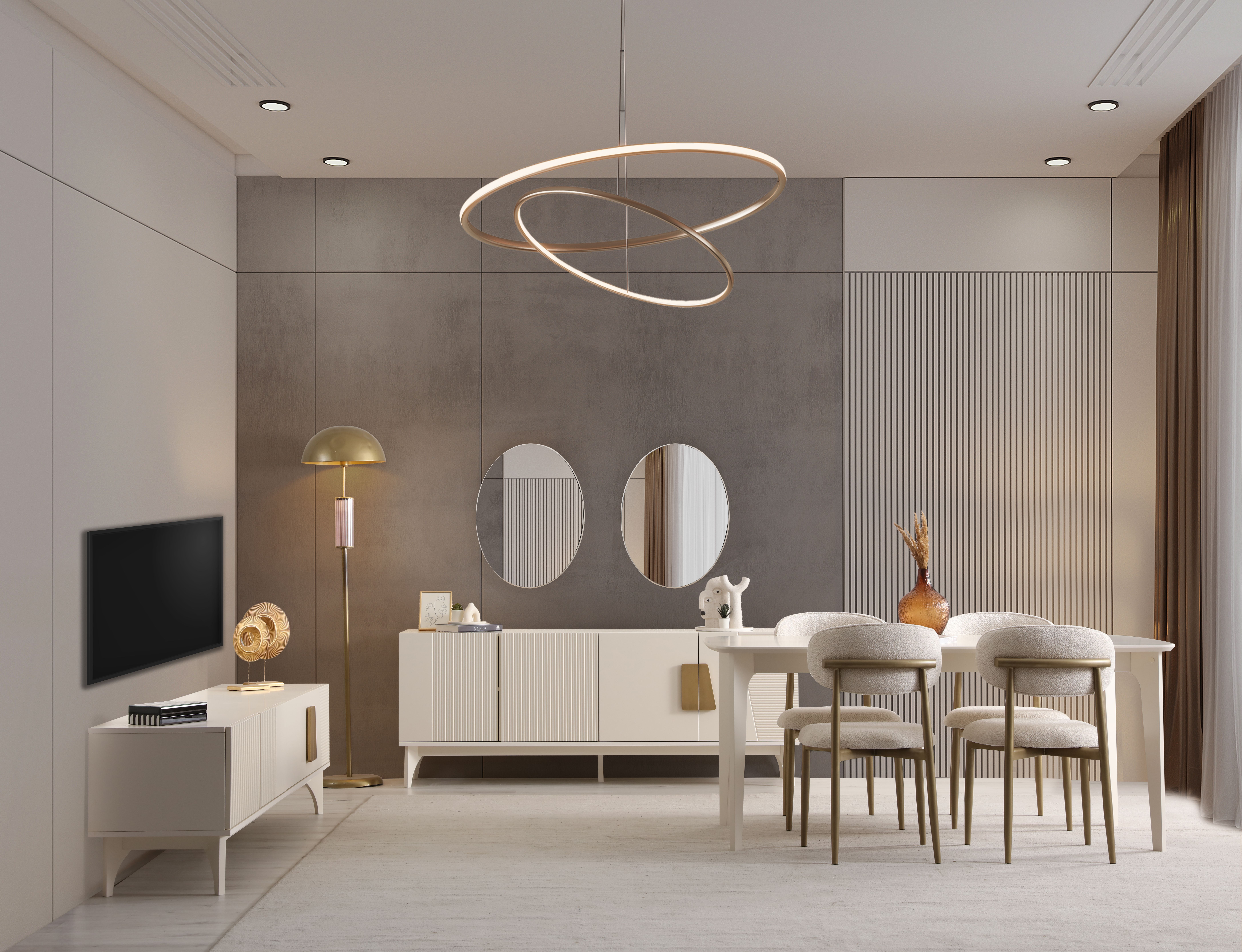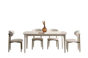 A dining room set that stands out with modern design and elegant details. It creates a sophisticated atmosphere in your space.