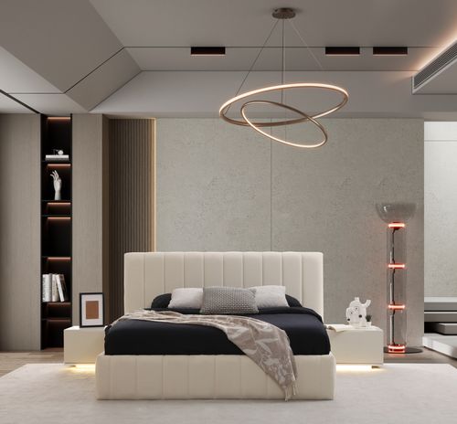 A bed with modern and minimal design.